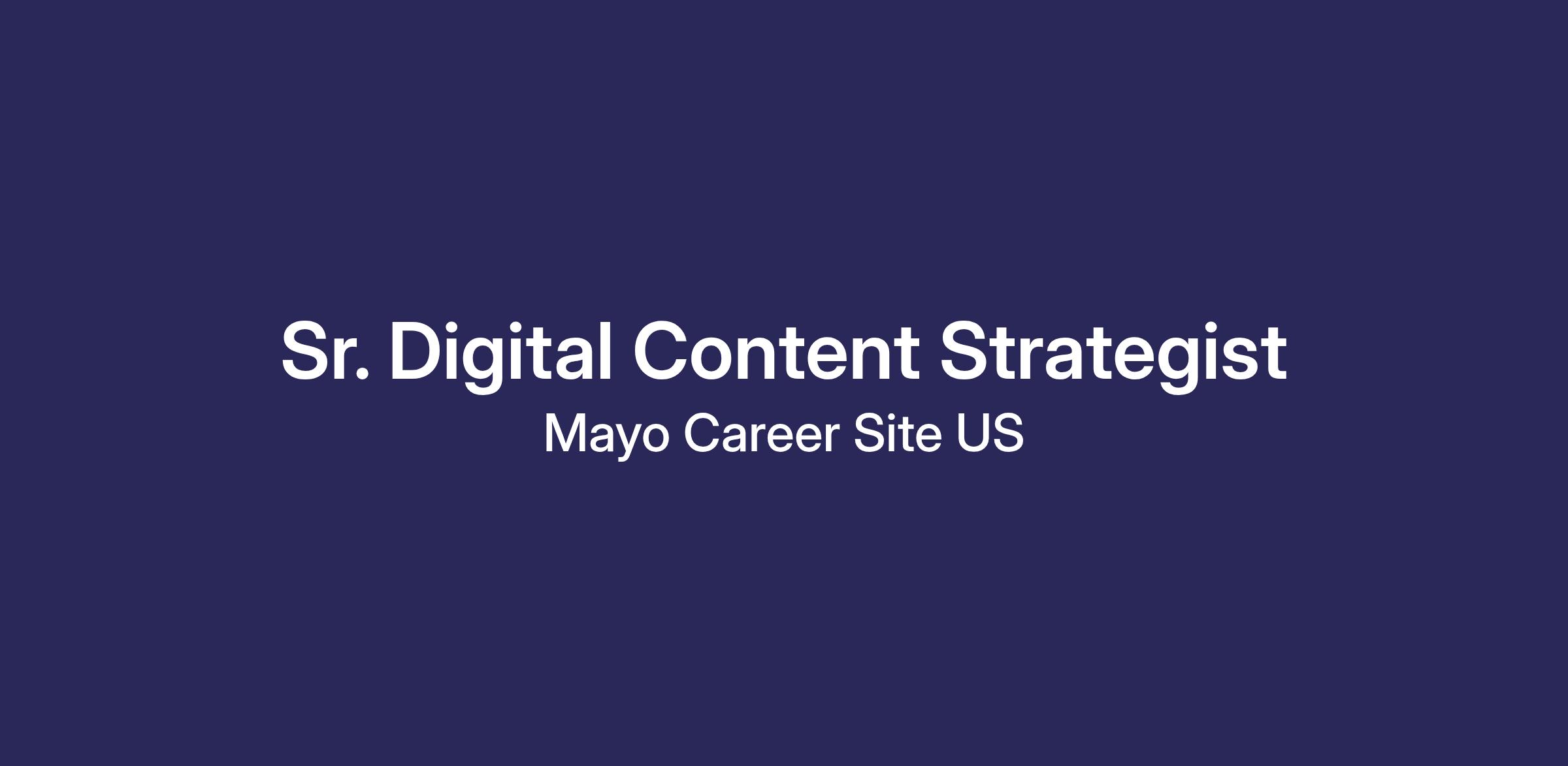 The Senior Digital Content Strategist understands and guides content solutions prioritized by Mayo Clinic stakeholders and MCP partners, with a primary focus on transforming complex, ambiguous, and emerging clinical, technical, and operational training into clear, actionable digital artifacts for end users. Leads innovative projects or agile teams for the development of products and services where delivery of content is core functionality, particularly training and enablement assets designed to support adoption and performance often serving as the initial executor when requirements and standards are not yet defined.