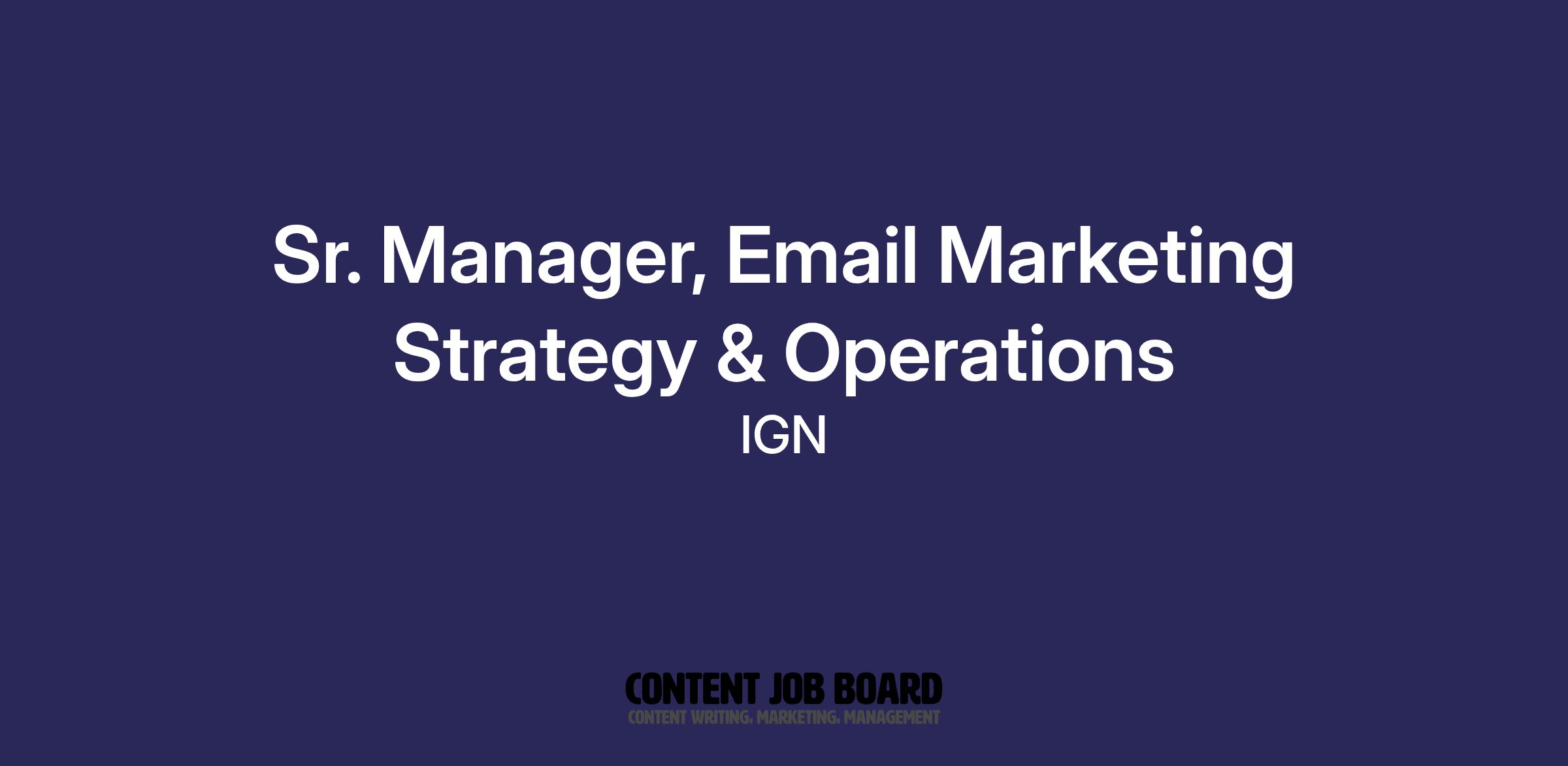 Sr. Manager, Email Marketing Strategy & Operations