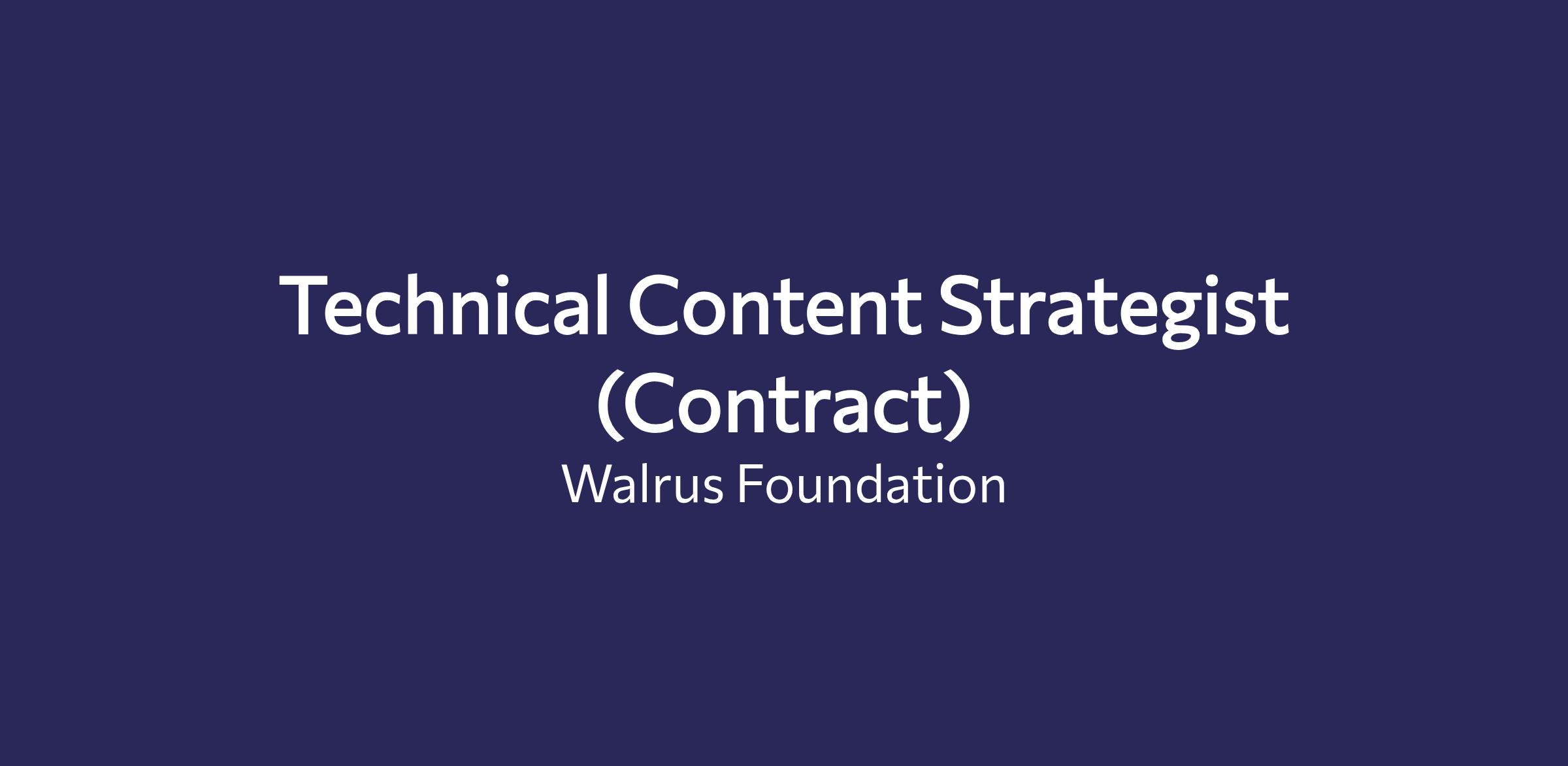 We’re looking for a contract technical content strategist to shape and communicate the Walrus narrative to a developer-first audience. This role will focus on translating Walrus’ core value proposition — verifiable data infrastructure for programmable, provable, and highly available applications — into clear, compelling, and technically rigorous content, including code samples and diagrams where relevant.
