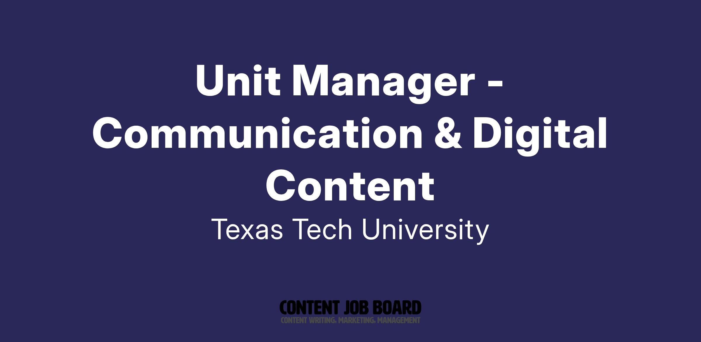 Manages a unit within a department. Plans, organizes and develops goals and procedures for the unit. Represents the unit to administrators, outside agencies and others on relevant matters. Supervises subordinate staff.