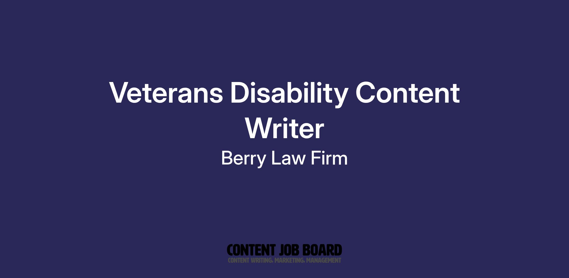Berry Law seeks a highly skilled and motivated Veterans Disability Content Writer to join our team. This individual will serve as a key voice in communicating Berry Law’s mission to support Veterans nationwide. The ideal candidate is a strong, adaptable writer capable of producing high-quality, publication-ready content daily.