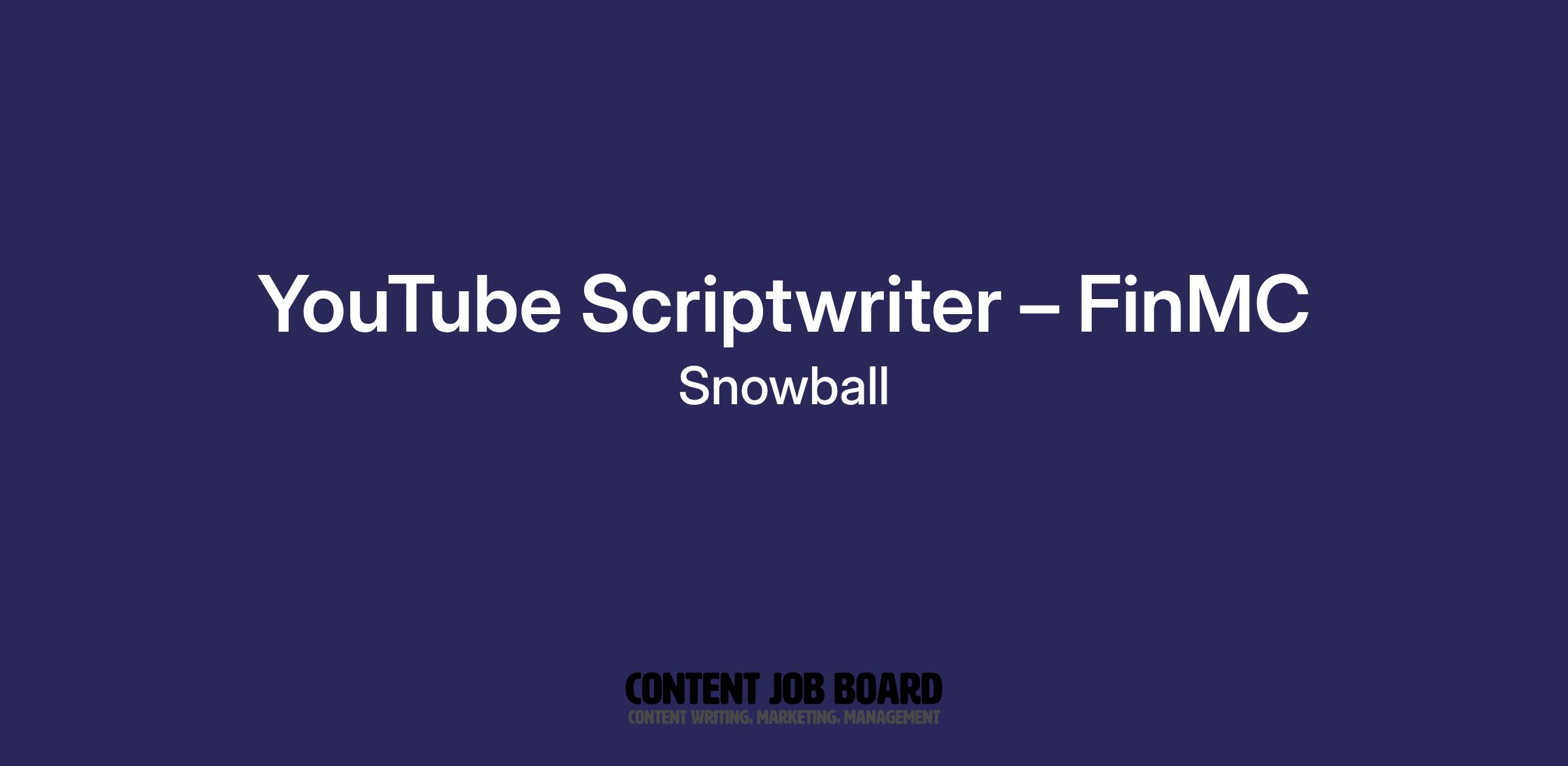 Snowball is hiring a Financial Scriptwriter for FinMC, a next-generation finance media company building a YouTube presence around money, markets, and trading.